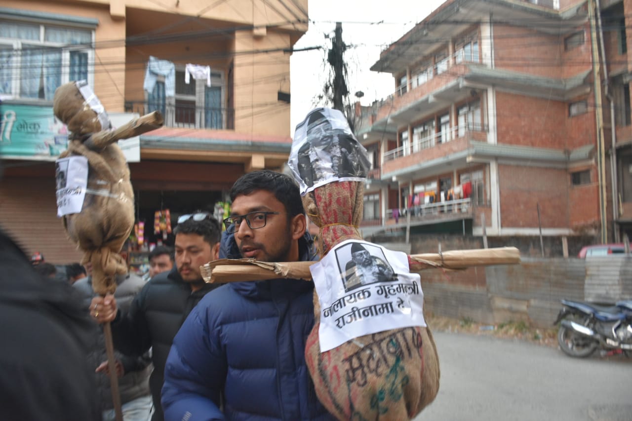 गृहमन्त्री खाँणको राजीनामा माग्दै अनेरास्ववियु (क्रान्तिकारी) ले जलायो पुत्ला