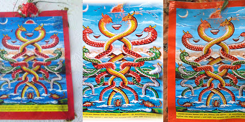 मूलढोकामा नागको चित्र टाँसी पूजाअर्चना